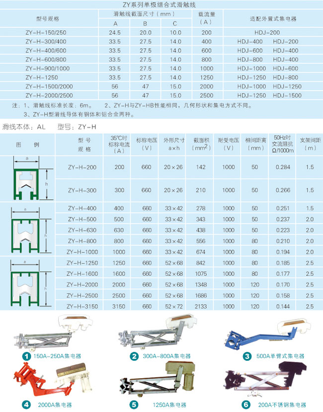 HXPnR-H系列組合式滑觸線由H型鋁合金本體導(dǎo)軌加壓V型不銹鋼滑接帶、PVC絕緣外殼、外置式集電器以及懸吊、固定等組件組合而成。該產(chǎn)品以其設(shè)計(jì)新穎、結(jié)構(gòu)合理、維護(hù)方便等特點(diǎn)被廣泛地應(yīng)用于電流較大、使用頻率較高、運(yùn)行速度快和環(huán)境較差的場(chǎng)合。 HXPnR—H系列排式組合滑線導(dǎo)軌是我廠為冶金、造船、起重機(jī)、汽車(chē)制造、港口裝卸等設(shè)計(jì)生產(chǎn)的一種高性能移動(dòng)輸電裝置。對(duì)于供電、高速運(yùn)行、大電流場(chǎng)合特別適用。